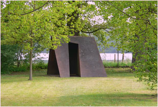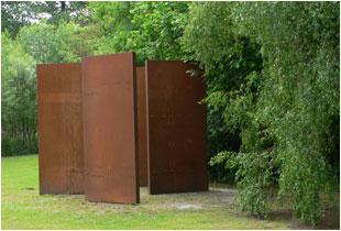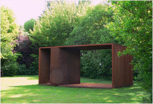 27 Postkarten + Textheft in einer Faltschachtel (Postkartensammlung zu den großen Stahlskulpturen im Außenraum), Galerie Monika Hoffmann, 2004